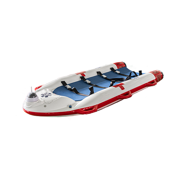 多功能水上救援担架是一款集航灯、报警、喊话、加热恒温、实时图像传输以及失联自动返航于一体的高科技的智能救生产品,其操作简单,使用方便,可以从船上、岸上、桥上、或者飞机(包括无人机)上投掷,可以在波浪之中稳定转弯,抗风浪行进。可以携带救生圈或溺水人员等,溺水人员救上担架后系好安全带恒温板保证人体温 度,担架遥控回到安全区域或者岸边,真正做到快速安全有效地施救。